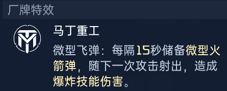 这个没什么好说的,就是每15秒攻击会附带一波火箭弹,可以造成爆炸伤害。