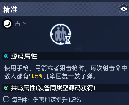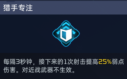 基石源码推荐猎手专注,可以增加我们架点狙击时的弱点伤害,蓄满伤害是1.5秒,也就是每三发就能触发两次,如果说中间换换位置,相当于每次攻击都能触发。