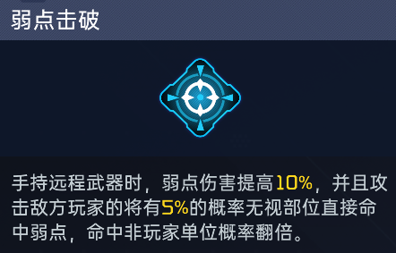 连射玩家那就选弱点击破,虽然降低了15%的弱点伤害,但至少每次都能触发,折合下来伤害并不算太亏,但这样玩确实不如直接拿个步枪。