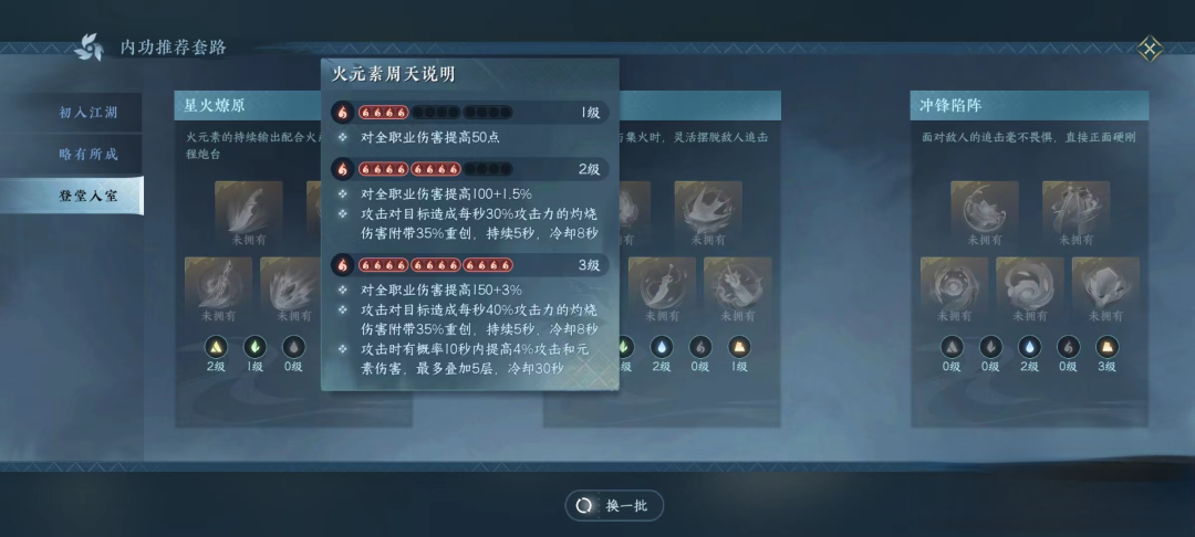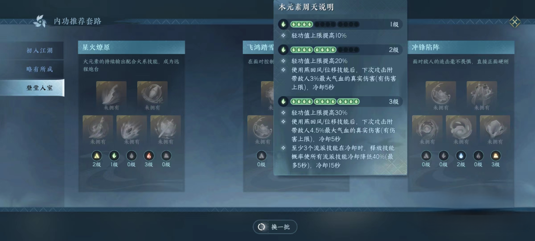 2、推荐内功:却邪、踏虹、归元、缚刃、铸羽