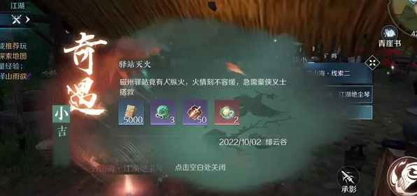 任务:触发剧情跟随剧情即可完成,中间的宝箱需要使用江湖技能“火”来破解。