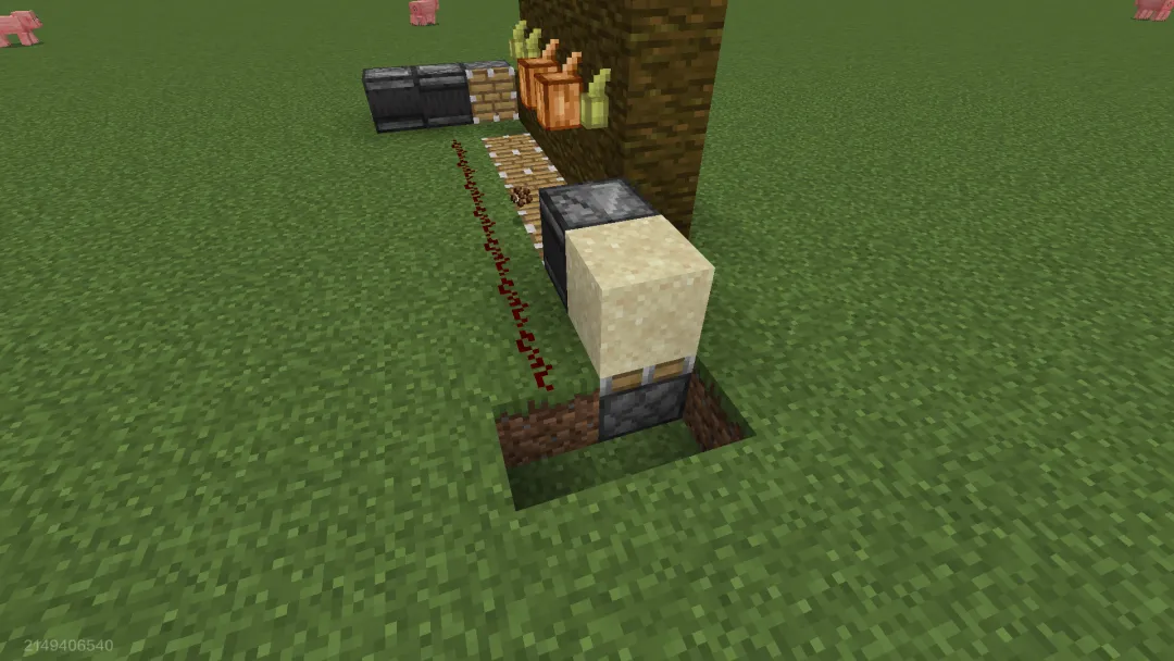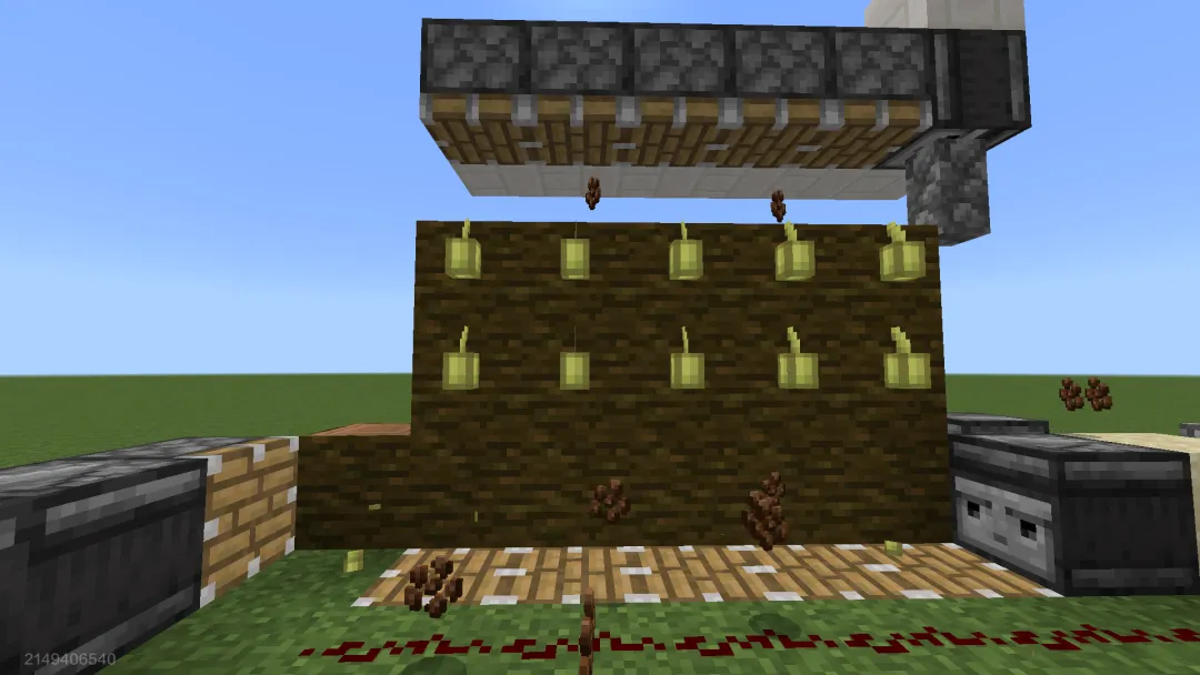 随后在可可豆下方的方块放置活塞