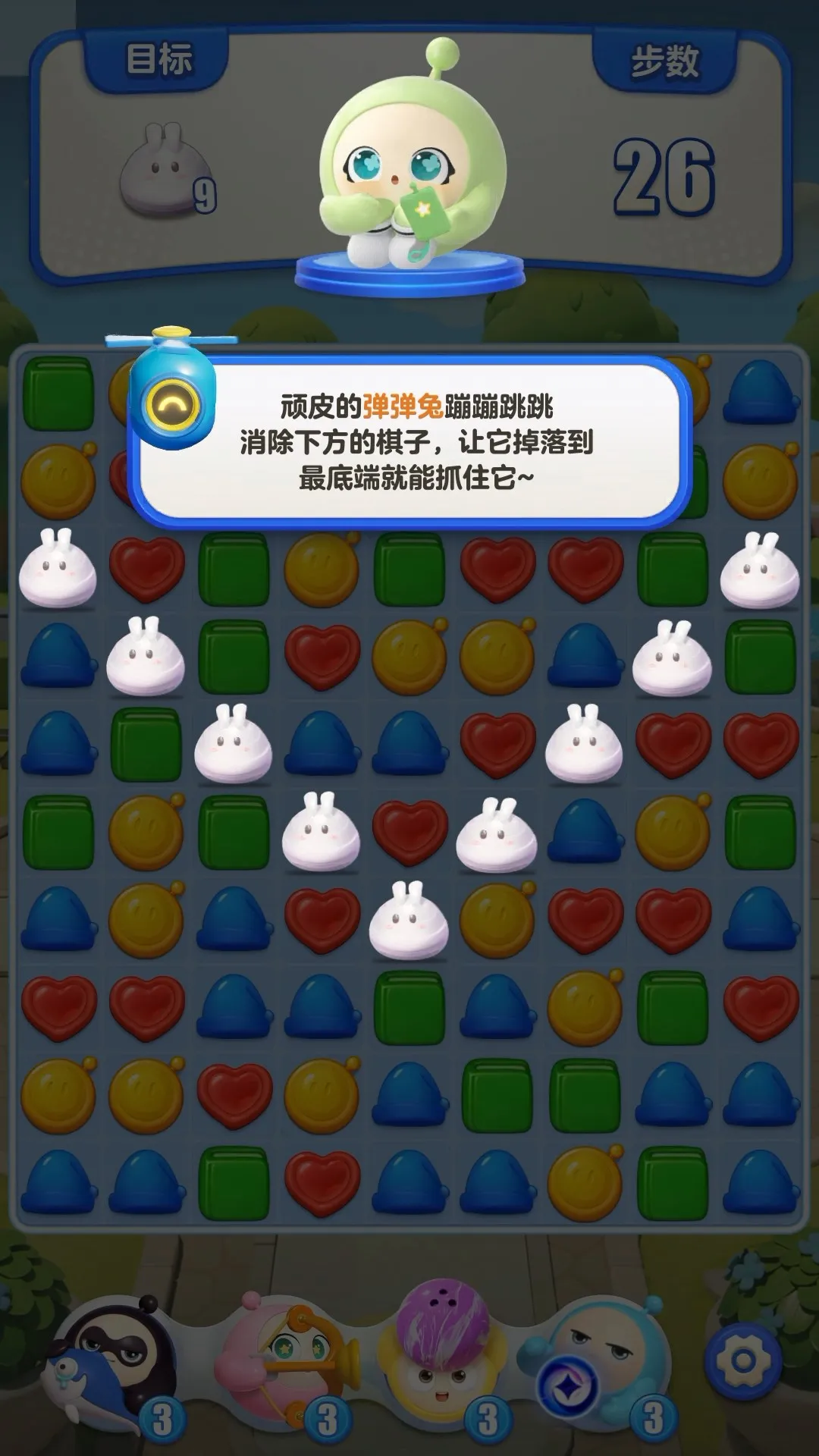 让弹弹兔掉到最底端就能抓住它!