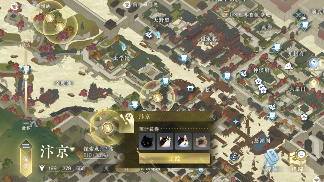大家可以依据宠物们的习性与性格,在逆水寒大世界的各个区域,抓到各种品种不同、品相各异的野生动物们带回家!同一种宠物,可能会出现不同地图的不同位置,可通过【地图】→【标签】→【身份】→【育宠】来查看该区域出现的宠物。