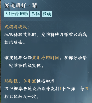 而部分性格还会对战斗技能产生影响。小宠物不愿意干活,可能天生爱冒险,是想要与您一块征战武林了!