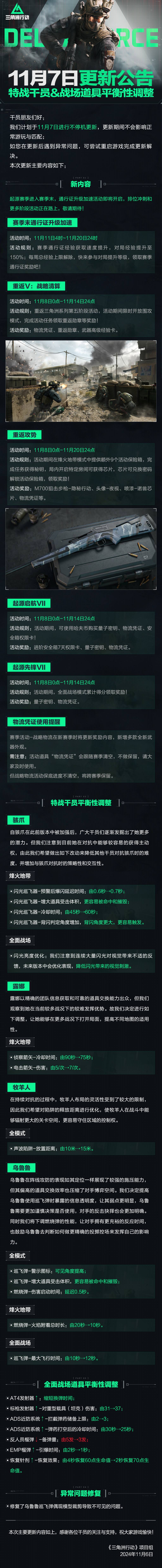 11月7日更新公告丨特战干员&战场道具平衡性调整