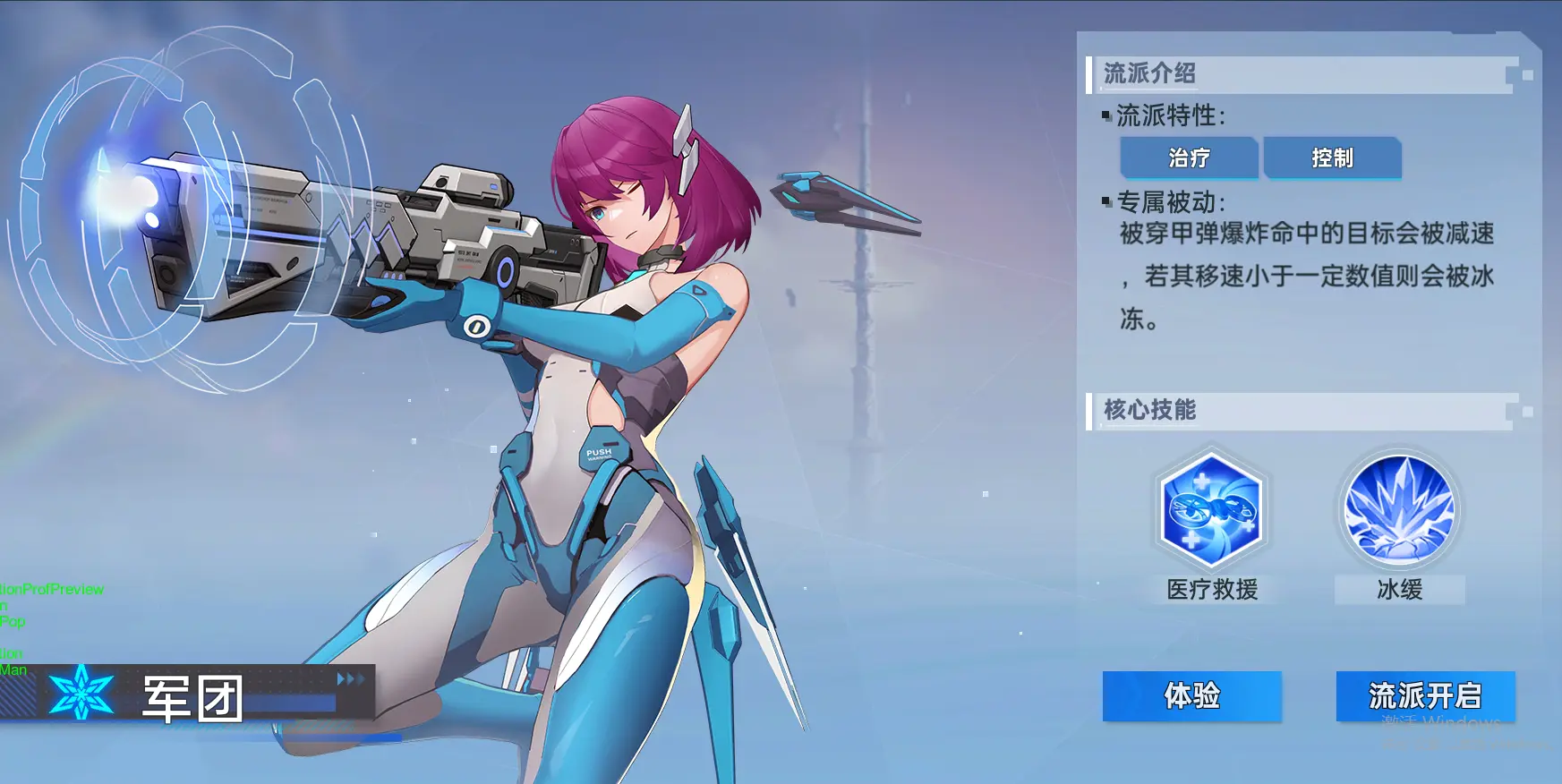 军团则放弃了更高的伤害能力,转而使用多样方式辅助队友。被穿甲弹爆炸命中的敌人会被减速,对被减速的敌人会造成额外的冰冻效果。召唤无人机,可以对范围内的友军提供持续治疗。