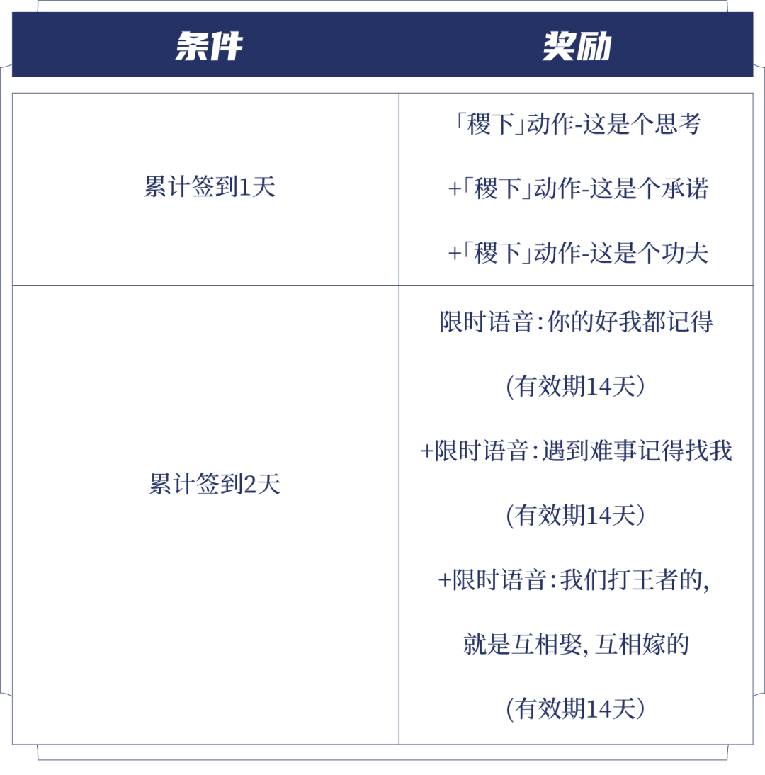累计签到1天拿稷下动作、2天拿限时语音