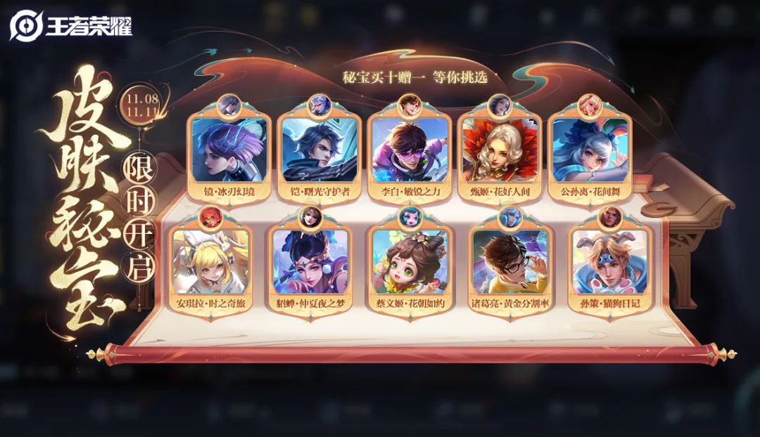 ★【免费皮肤三选一】11月7日-11月20日,参与对局、观赛年总,最快仅需3天即可在以下皮肤中任选一款领取:后羿-阿尔法小队、宫本武藏-未来纪元、太乙真人-劲辣红锅,更有冠军头像框、冠军语音等精美道具等你兑换!