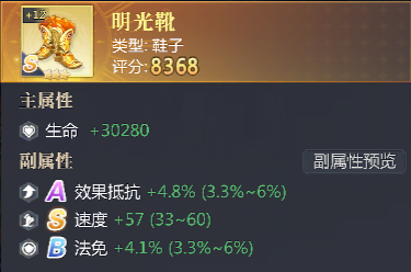 防御系属性中 由于姜子牙本身速度不快,所以尽可能出效果抵抗来增强其抵御控制的能力,而速度属性可以补足他在速度上的短板。
