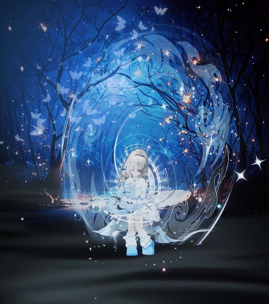 蓝色与角色完美融合,仿佛在幻境中