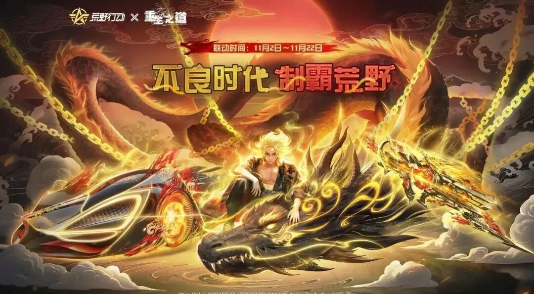 荒野行动与重生之道开启联动活动,活动时间为2024年11月8日至12月1日,完成任务可领5抽。本次联动推出佐野万次郎相关时装、M4A1皮肤、载具皮肤等内容,玩家可加入东京万字会,体验联动专属内容。
