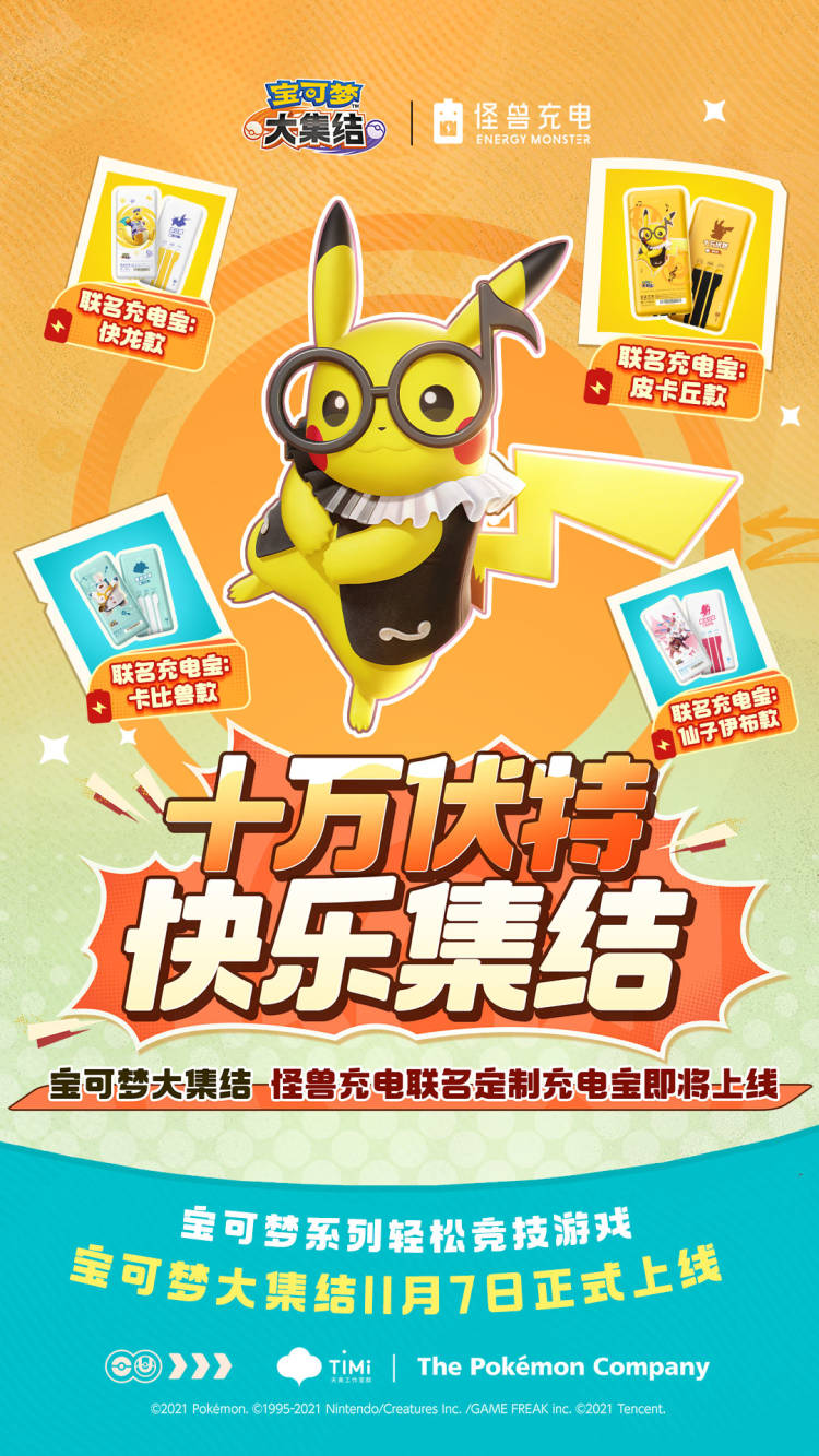 十万伏特,快乐集结!宝可梦大集结丨怪兽充电联动正式开启,四款联名充电宝全国范围内陆续上线!