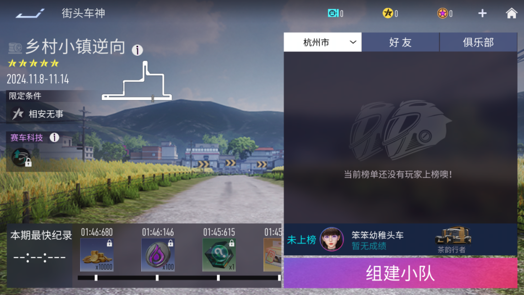 街头车神『乡村小镇·逆向』将于2024年11月8日8:00开启,本期街头车神无规则限制。
