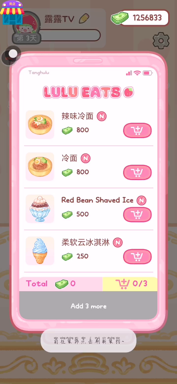 更新宠物!!! 「你进行草莓糖葫芦吃播的话,我就赞助100元。」 「脆口的声音太迷人了(°θ°)」 由于客人都被最近新开的许多糖葫芦店家抢走,曾经号称糖葫芦达人的父母因此卧病在床。 继承父母店面的主角露露开始糖葫芦吃播来宣传店面。 直到成为真正的糖葫芦达人那一天! 「今天我也要开始糖葫芦直播罗!( •o• )」 [串材料] 只有新鲜的水果的话,很难以一名吃播实况主存活下来。还要有松饼、地球软糖、青阳辣椒!利用奇特的材料制作糖葫芦吧。 [裹糖衣] 将材料串满竹签的话,就放进锅子搅动吧。唯有利用达人的秘法,才能裹出又薄又脆的糖衣。 [即时吃播] 咔哒咔哒!今天的吃播也大成功。热烈的聊天内容看起来反应也不错。看来得利用完成观众任务得到的赞助金来买新材料了! 来,准备好了吧?现在就马上挑战成为糖葫芦达人吧!