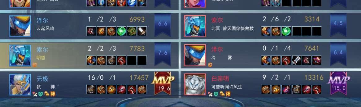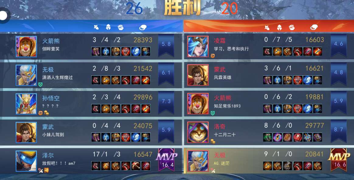 。。。。。也是被带飞了,对面2国服,我这一国服第5无极,还以为我要输了。