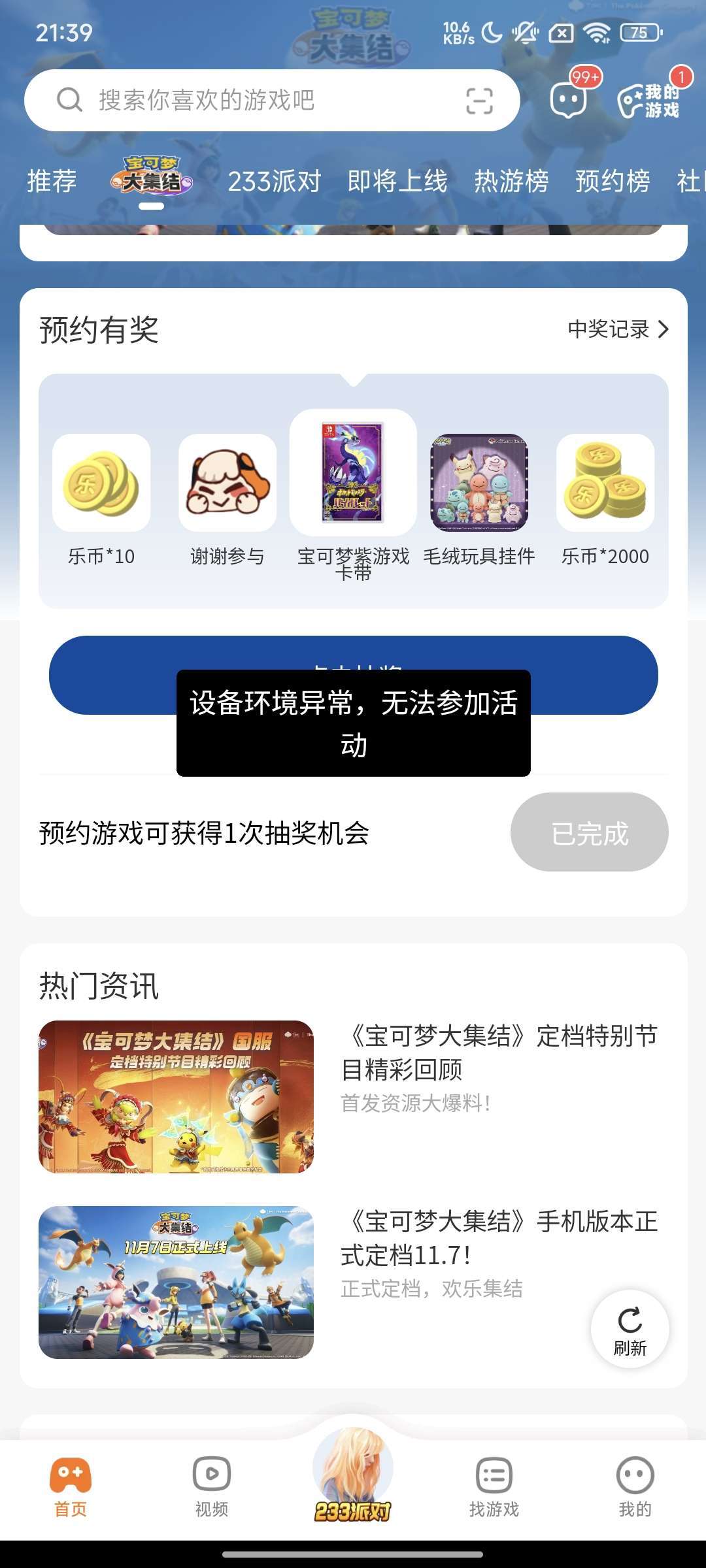 设备环境异常,无法参加活 动