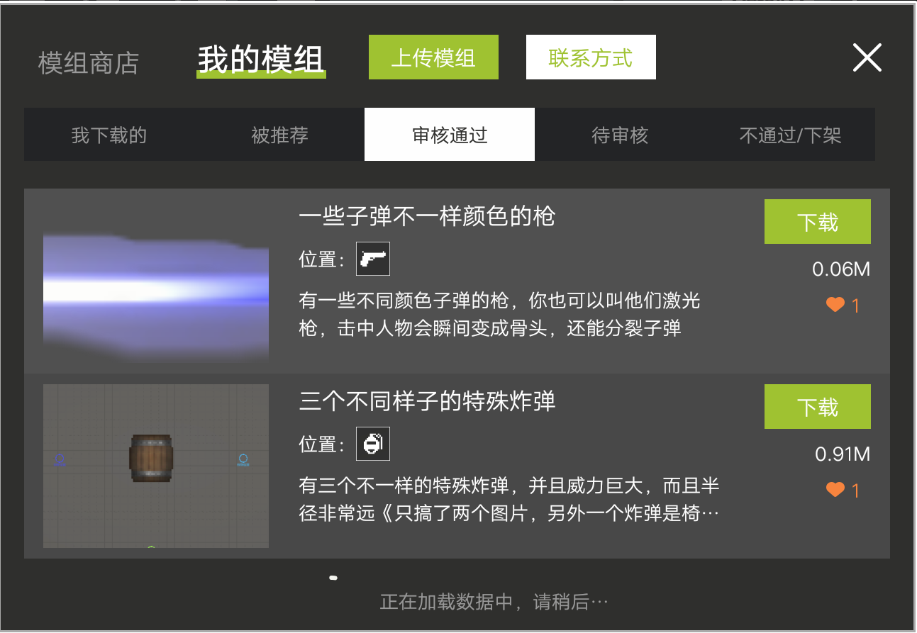 兄弟们,之前通过了两个模组现在又上传了两个模组,新建了一个