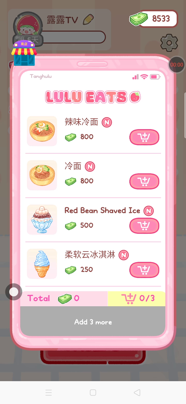 更新宠物!!! 「你进行草莓糖葫芦吃播的话,我就赞助100元。」 「脆口的声音太迷人了(°θ°)」 由于客人都被最近新开的许多糖葫芦店家抢走,曾经号称糖葫芦达人的父母因此卧病在床。 继承父母店面的主角露露开始糖葫芦吃播来宣传店面。 直到成为真正的糖葫芦达人那一天! 「今天我也要开始糖葫芦直播罗!( •o• )」 [串材料] 只有新鲜的水果的话,很难以一名吃播实况主存活下来。还要有松饼、地球软糖、青阳辣椒!利用奇特的材料制作糖葫芦吧。 [裹糖衣] 将材料串满竹签的话,就放进锅子搅动吧。唯有利用达人的秘法,才能裹出又薄又脆的糖衣。 [即时吃播] 咔哒咔哒!今天的吃播也大成功。热烈的聊天内容看起来反应也不错。看来得利用完成观众任务得到的赞助金来买新材料了! 来,准备好了吧?现在就马上挑战成为糖葫芦达人吧!