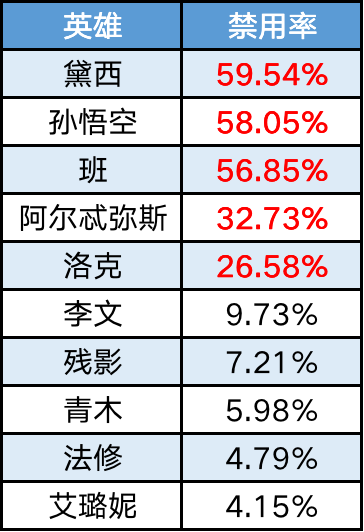 【禁用率前五】黛西、孙悟空、班、阿尔忒弥斯、洛克