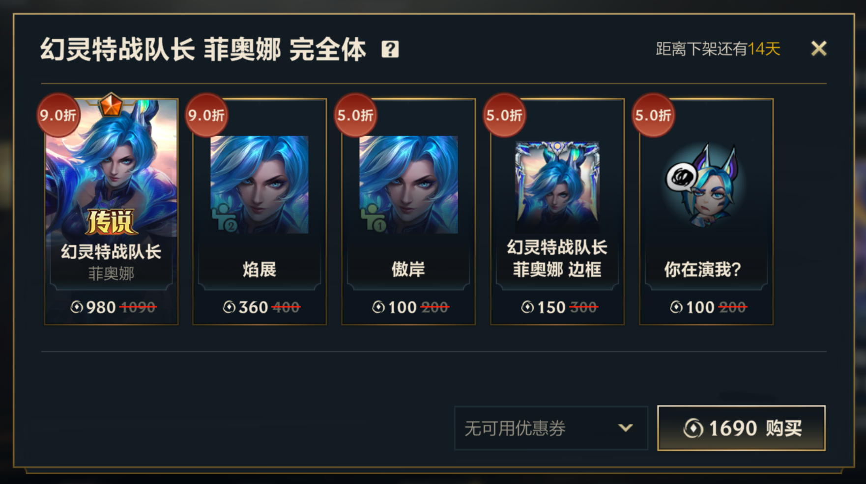 截止至11月21日,召唤师们可前往商城,使用5960点券获取幻灵战队特战集结大礼包,礼包内包含8折优惠的幻灵特战队长 菲奥娜、海魔至尊 亚托克斯、幻灵战斗蝠 薇恩、幻灵特战骏 希维尔、幻灵特战羚 索拉卡5款皮肤及精英姿态-铸心剑、精英姿态-焰展,还包含各皮肤对应英雄姿态、皮肤边框以及局内表情-你在演我?、局内表情-哈哈哈等5折好礼~