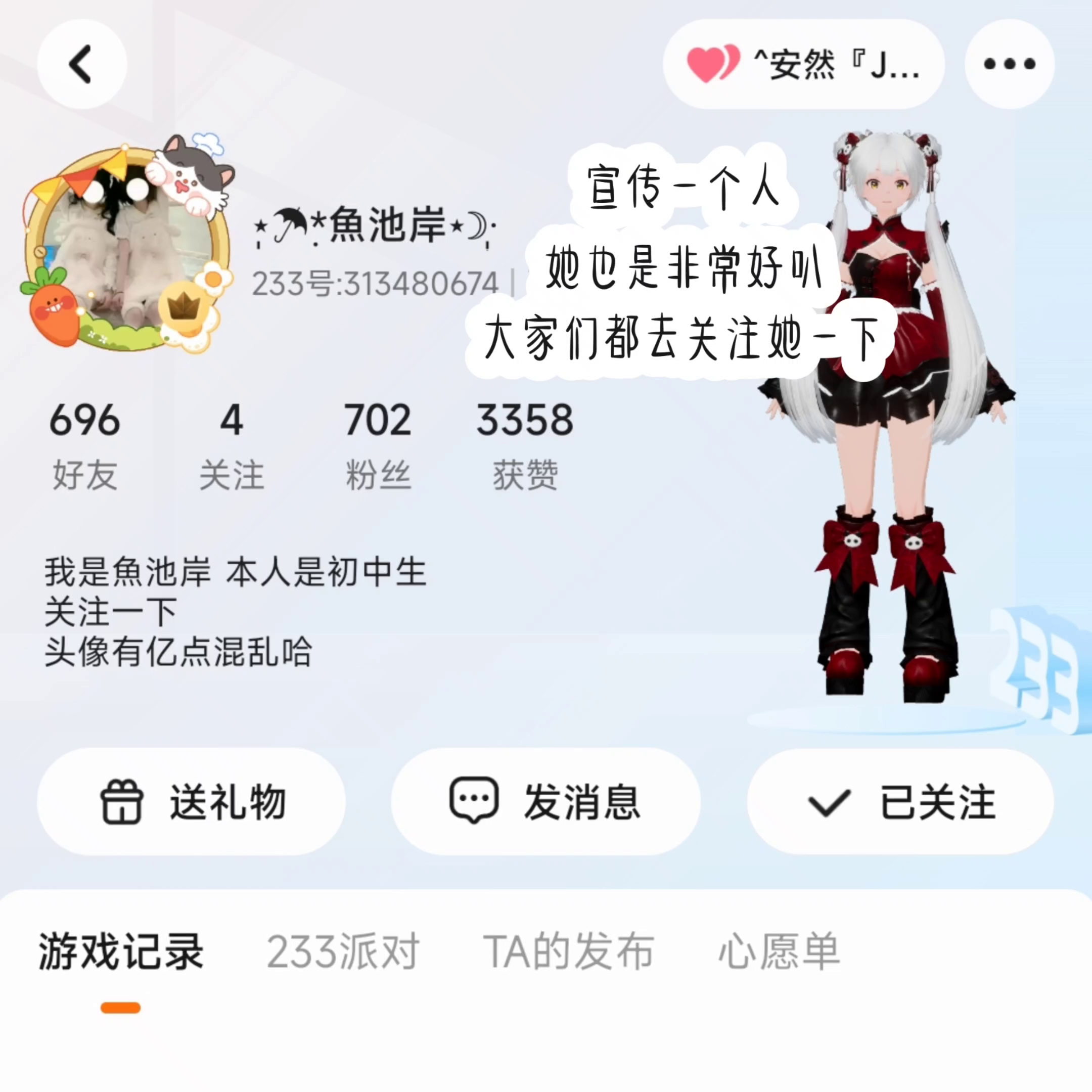 宣传一个人,她也是非常好吧 快去关注她一下
