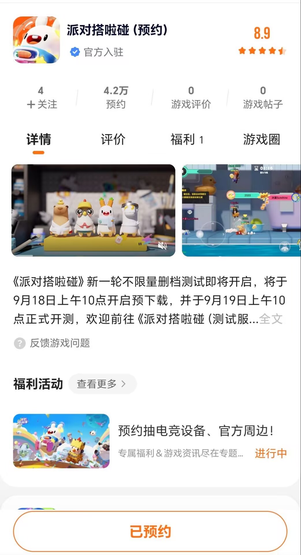 ①成功预约《派对搭啦碰》;