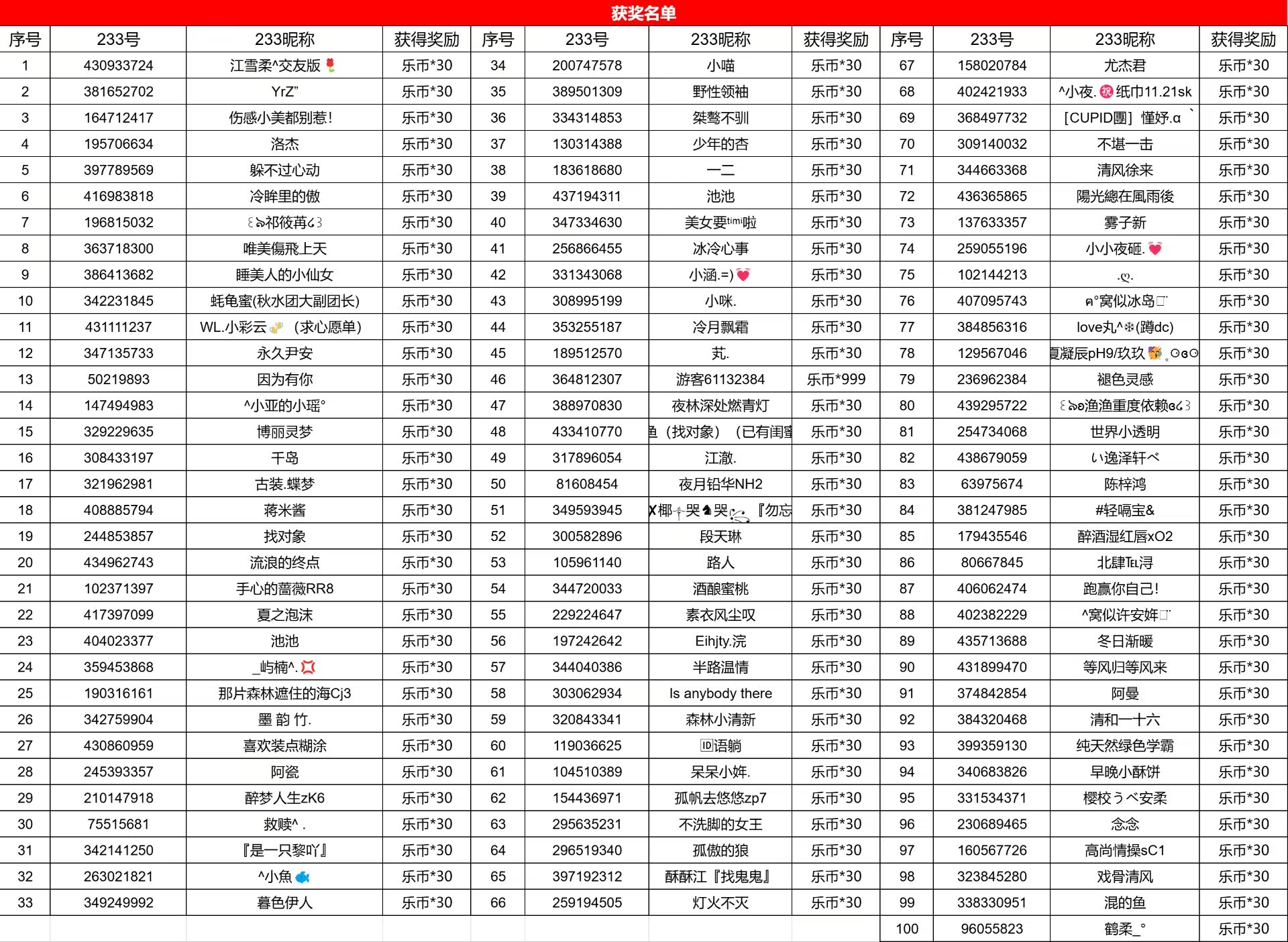 PS:一共100个名额,每人随机分到1~999乐币,如若参与人数超1000人则在原有基础追加乐币*10000!