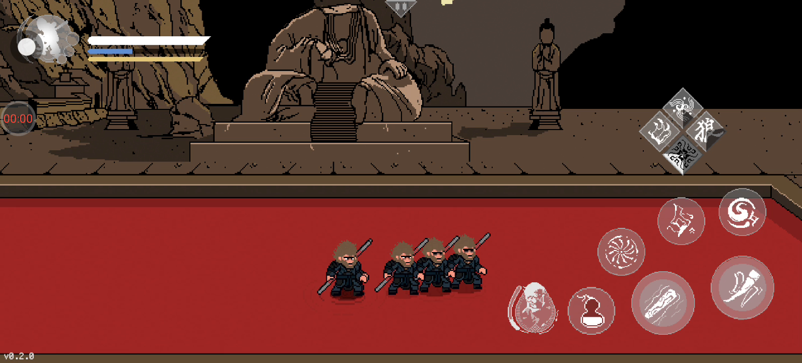 《黑神话像素版》已更新第二章节,第二章节0.2版本与0.1版本存档不互通,更新至0.2新版本后,进入游戏点击【新的轮回】即可游玩第二章节全新内容。 第二章(0.2版本)更新内容 1、新增第二章节:风起黄昏; 2、新增boss:广智、沙国王、沙二郎、浪里个波、波里个浪、虎先锋等; 3、新增隐身、变身、分身等技能法术; 4、新增神力系统和蓄力条; 5、新增精魄系统; ----------- 温馨提示: 本游戏是由B站UP主:火山哥哥开发制作的同人游戏,233乐园对该游戏进行收录供大家游玩体验。 下载使用产生的版权问题请自行负责,233乐园不承担任何法律责任,如果您喜欢该游戏请支持官方正版。233乐园不拥有任何权利,其版权归该游戏的合法拥有者。如果该游戏侵犯了您的版权,请将相关版权证明或授权证明发送到邮箱,我们将在24小时内删除该游戏。 《黑神话悟空》像素版来袭啦!火山哥哥化身像素大师,将经典场景还原得淋漓尽致,十个不同地图场景让你眼花缭乱。孙悟空的移动、跳跃、战斗系统全部上线,连蓄力劈棍、棍花闪避都超级流畅,简直是像素版战斗艺术!小狼妖、大头、金池长老等BOSS悉数登场,每个都有独特招式,让你体验不一样的战斗乐趣!更有喝酒功能、定身术、存档系统等丰富玩法,让游戏不再单调。