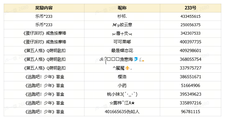开奖啦~恭喜以下小伙伴们中奖!乐币奖励将在5个工作日内发放,实物奖励将会有官方添加中奖用户为好友收集收货地址哦,请留意好友申请并注意是否有佩戴官方头衔哦~