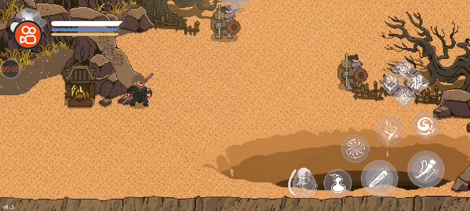 《黑神话像素版》已更新第二章节,第二章节0.2版本与0.1版本存档不互通,更新至0.2新版本后,进入游戏点击【新的轮回】即可游玩第二章节全新内容。 第二章(0.2版本)更新内容 1、新增第二章节:风起黄昏; 2、新增boss:广智、沙国王、沙二郎、浪里个波、波里个浪、虎先锋等; 3、新增隐身、变身、分身等技能法术; 4、新增神力系统和蓄力条; 5、新增精魄系统; ----------- 温馨提示: 本游戏是由B站UP主:火山哥哥开发制作的同人游戏,233乐园对该游戏进行收录供大家游玩体验。 下载使用产生的版权问题请自行负责,233乐园不承担任何法律责任,如果您喜欢该游戏请支持官方正版。233乐园不拥有任何权利,其版权归该游戏的合法拥有者。如果该游戏侵犯了您的版权,请将相关版权证明或授权证明发送到邮箱,我们将在24小时内删除该游戏。 《黑神话悟空》像素版来袭啦!火山哥哥化身像素大师,将经典场景还原得淋漓尽致,十个不同地图场景让你眼花缭乱。孙悟空的移动、跳跃、战斗系统全部上线,连蓄力劈棍、棍花闪避都超级流畅,简直是像素版战斗艺术!小狼妖、大头、金池长老等BOSS悉数登场,每个都有独特招式,让你体验不一样的战斗乐趣!更有喝酒功能、定身术、存档系统等丰富玩法,让游戏不再单调。