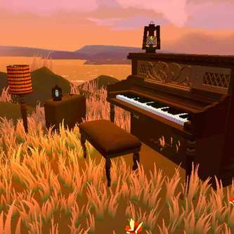 第二个打卡点是山丘上的一架钢琴,身边的小草随风摇曳🌾而这钢琴让人感到十分华贵优雅,坐在凳子打卡拍照,就连蛋仔也变得十分优雅😉