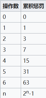 一个物品每次在铁砧上操作过后(不包括重命名),其操作数都会增加1,其当前累积惩罚都会在前一次基础上乘2再加1。如此一来,一个操作数为n的物品的累积惩罚是2n-1。
