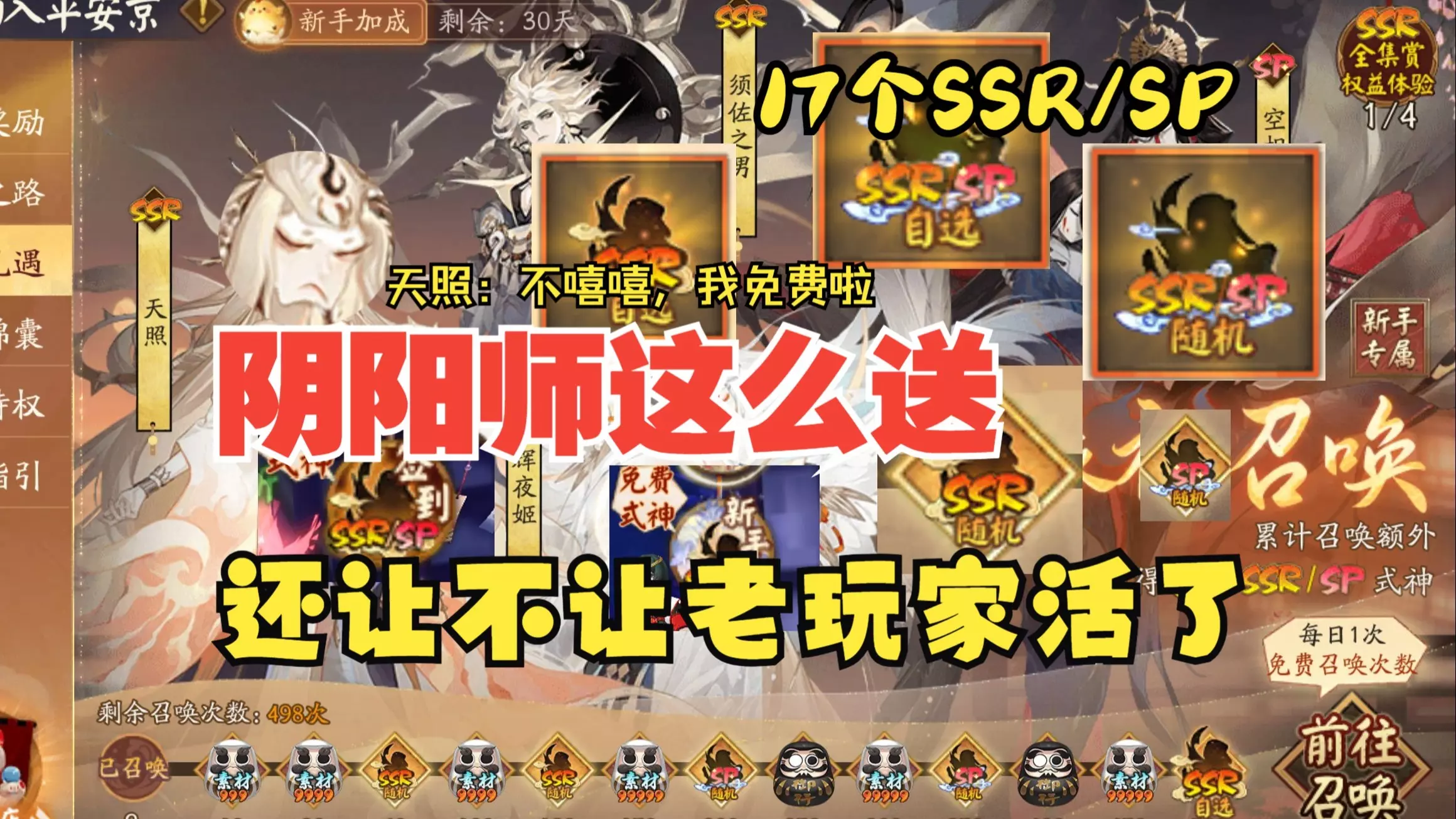 阴阳师九周年新区福利更新后具体能拿到哪些奖励,6个自选式神加10个随机式神,这老区是一刻也呆不下去了,谁加萌新可以入坑可以这么爽啊,谁还累死累活拼因幡啊,这游戏…