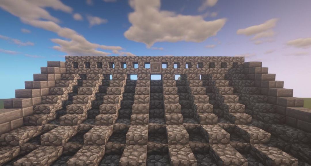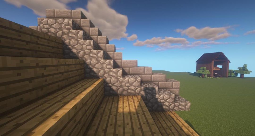 在如图位置分别放上圆石、圆石台阶和圆石楼梯~