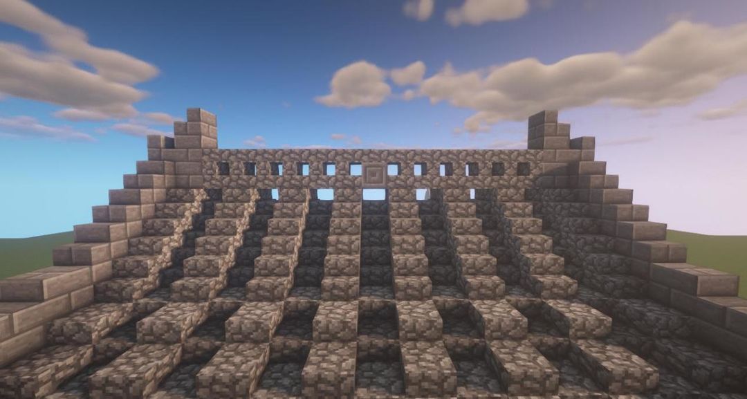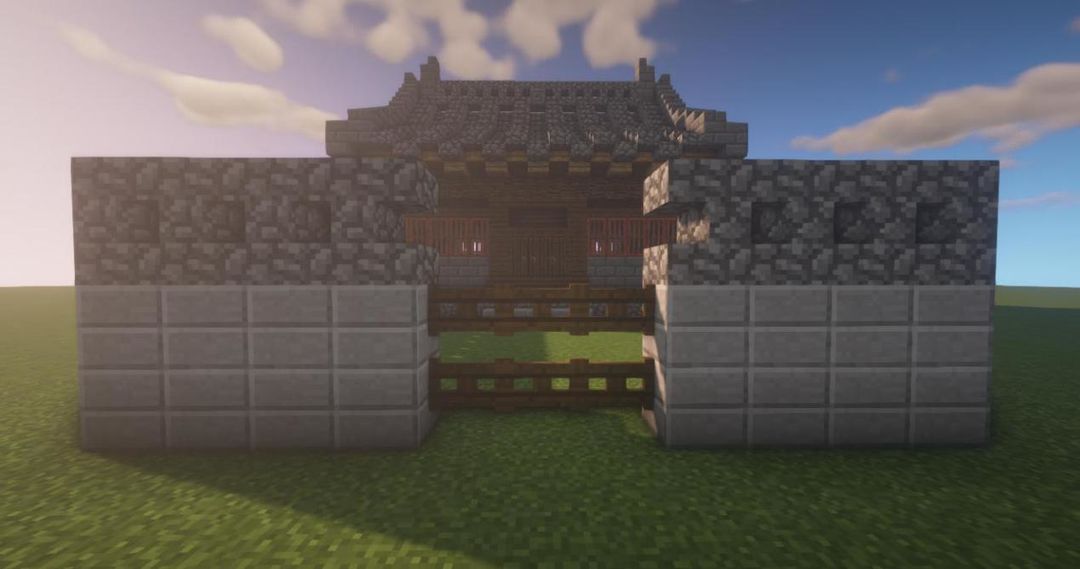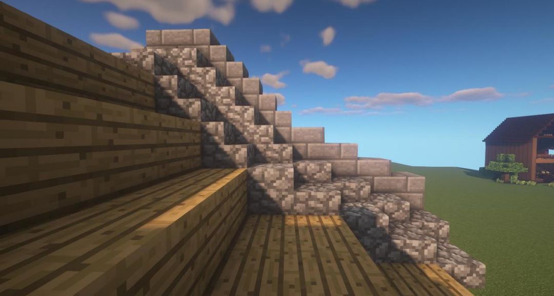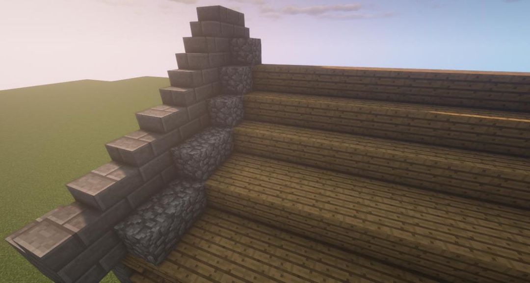 用圆石楼梯和圆石台阶增加墙的高度~