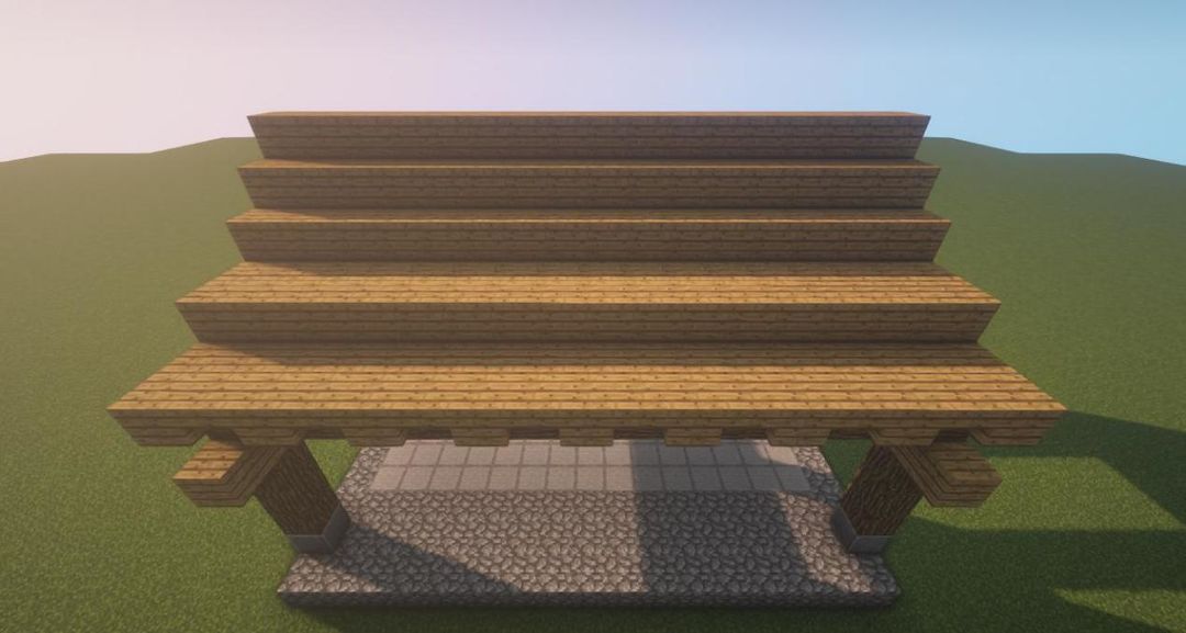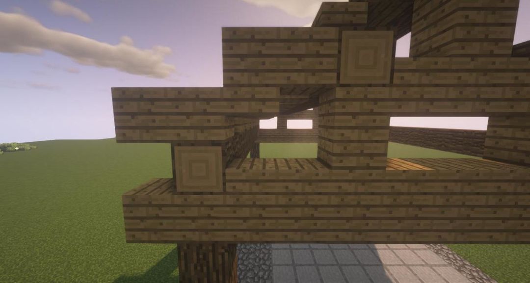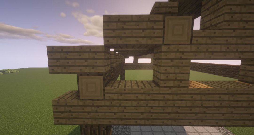 步骤四,放上橡木木板和橡木台阶~