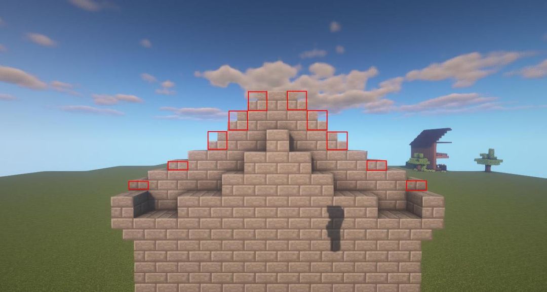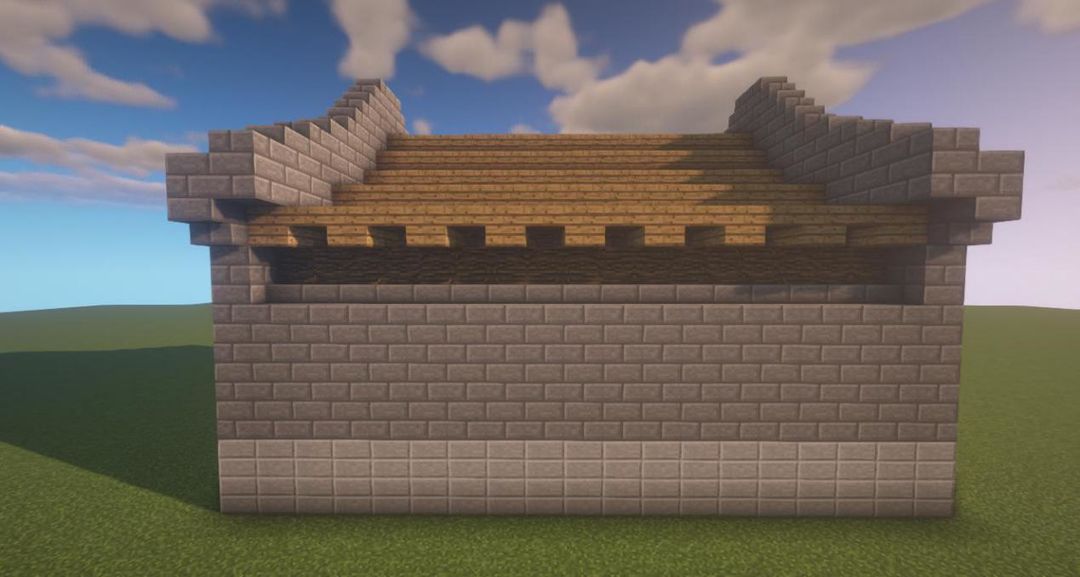 用石砖搭出两格高的脊~