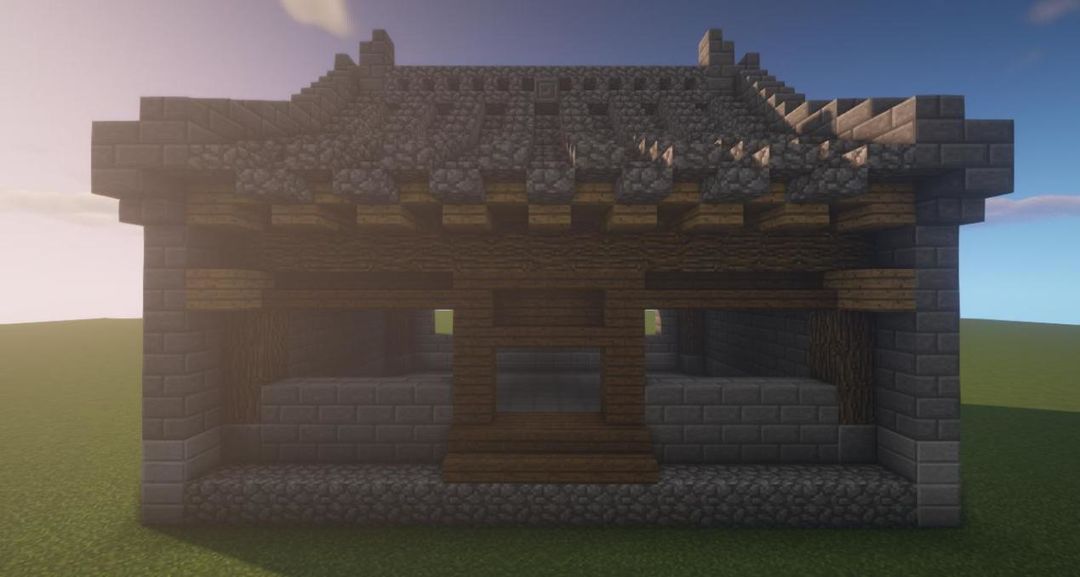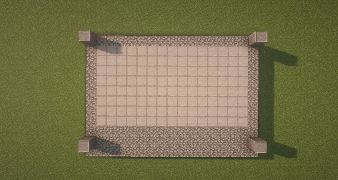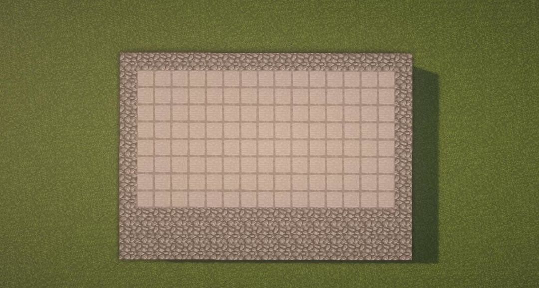 首先用圆石搭一个17*12的长方形,将部分圆石换成平滑石头~