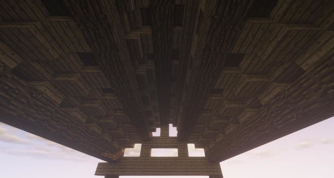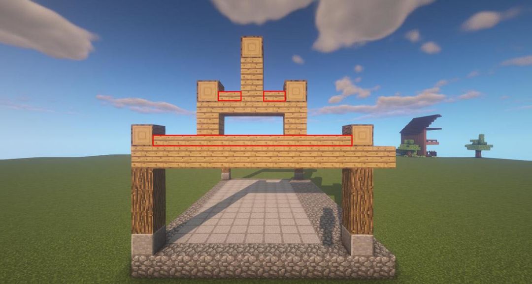 在顶部再放上两个橡木木板,两根椽子就完成啦!其他的部分参照这里即可~