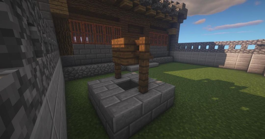 用石砖、云杉木栅栏和云杉木板做一个简易水井~