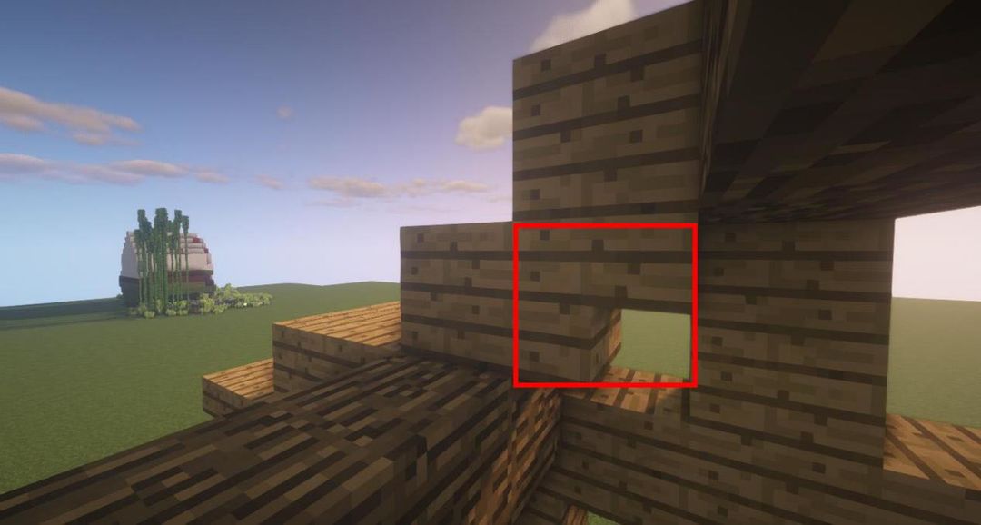 步骤二,在如图位置放上橡木台阶~