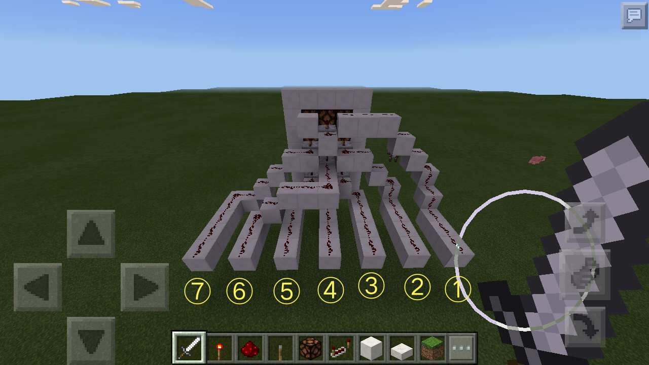 通过红石火把激活57两条线路,即可形成“1”的图像。↓↓↓