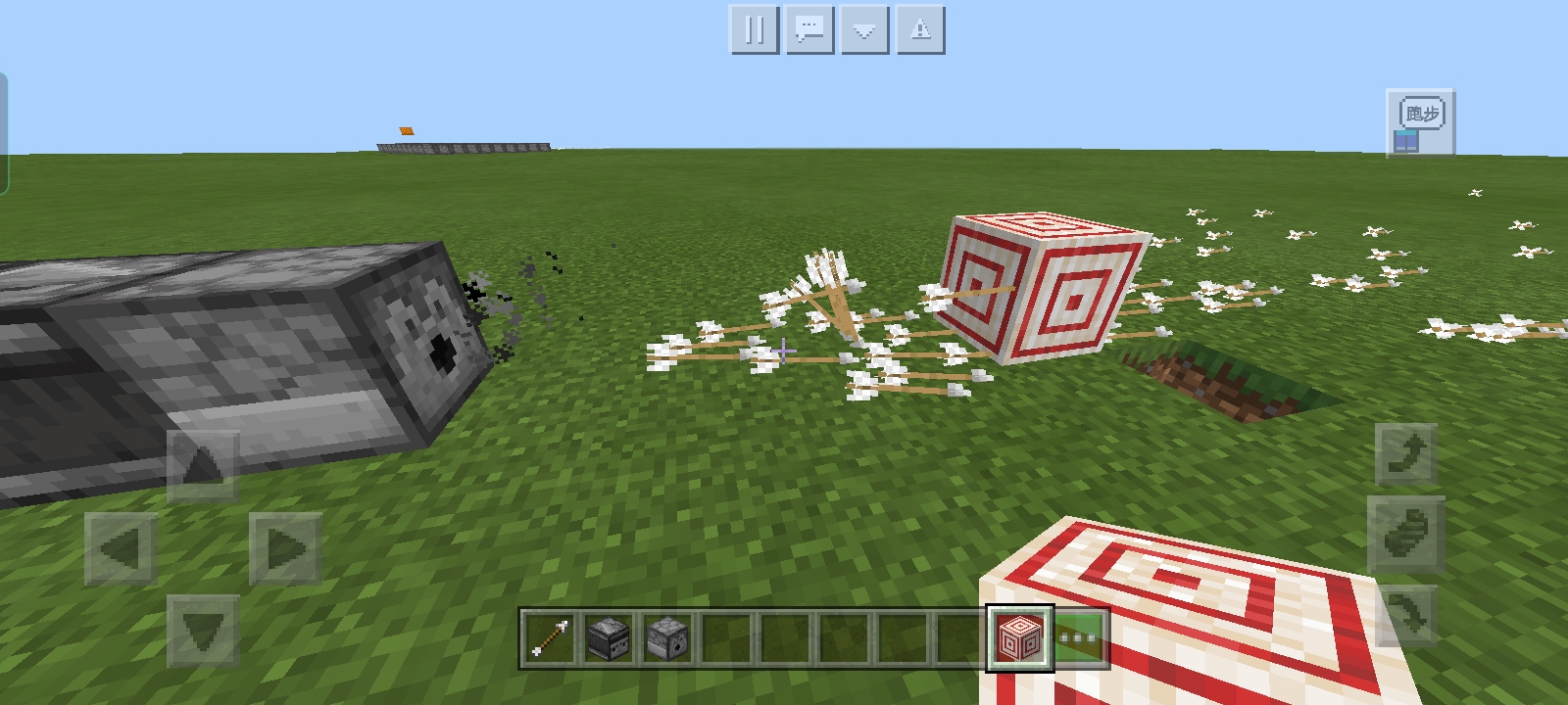 在旁边搭一个永动机然后赶紧站在围墙上,这个时候就会因为发射器的红石信号受到永动机的影响不断发出TNT