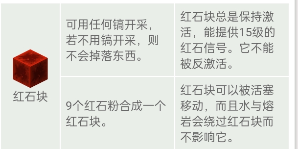 红石块有九个红石粉合成