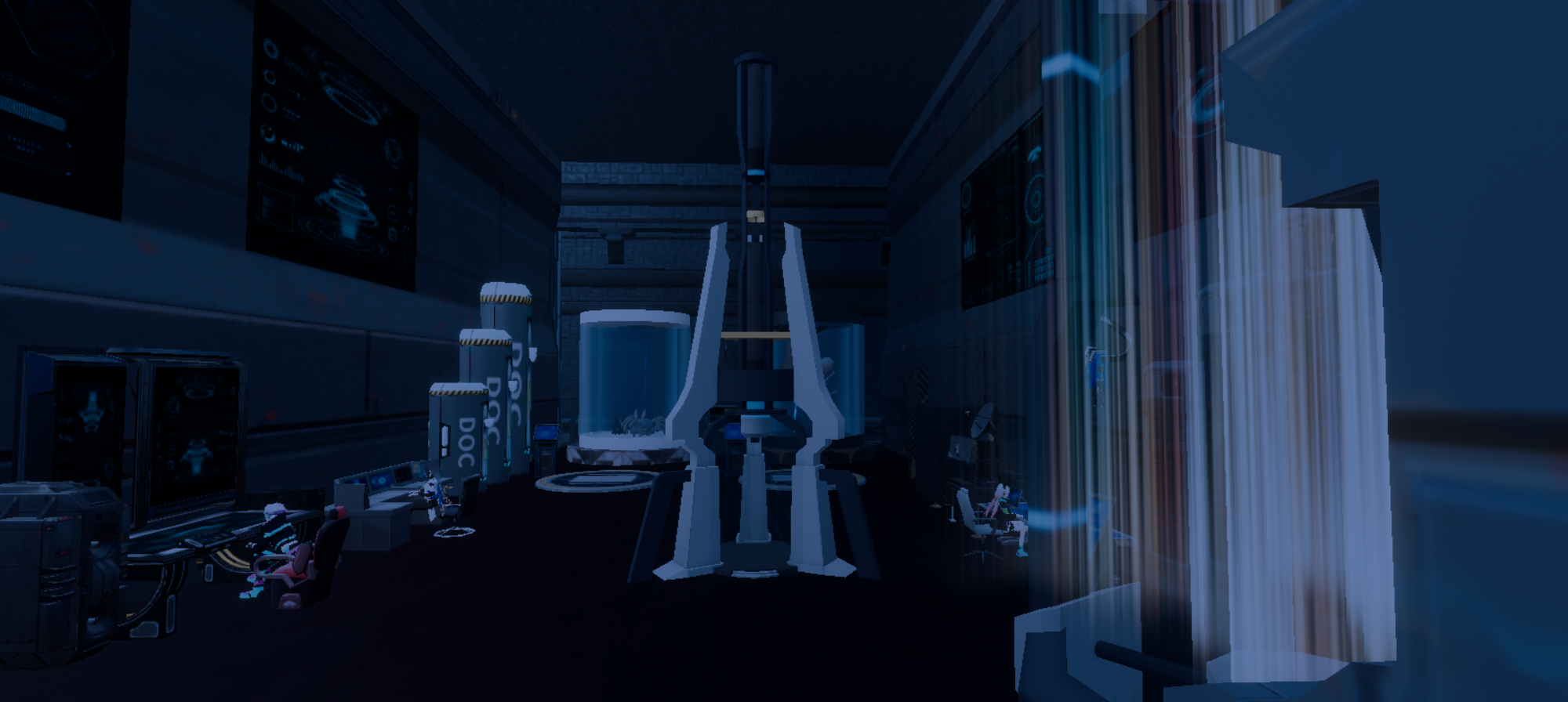 再往左移!房间内是截然不同的赛博风格,仿佛割裂了不同世纪,精密的仪器被摆放整齐……等等!被摆放在罐中的东西那是什么?!
