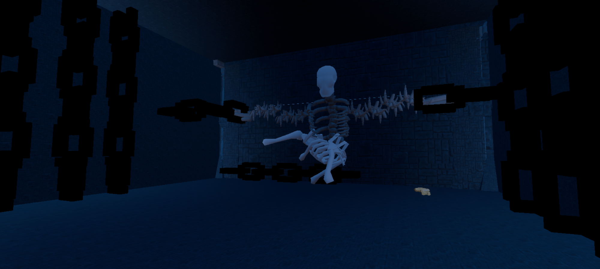 城堡内恐怖的牢房中,巨大的残骸被枷锁紧紧的固定在墙上……