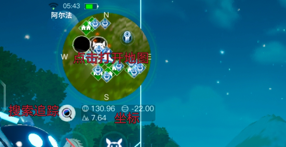 地图还有一个很强大的功能就是追踪,可以点击之后选择一种以解锁图鉴的植物矿石或者动物进行追踪,直接会在大世界上面显示那个物资与你的距离以及方向。