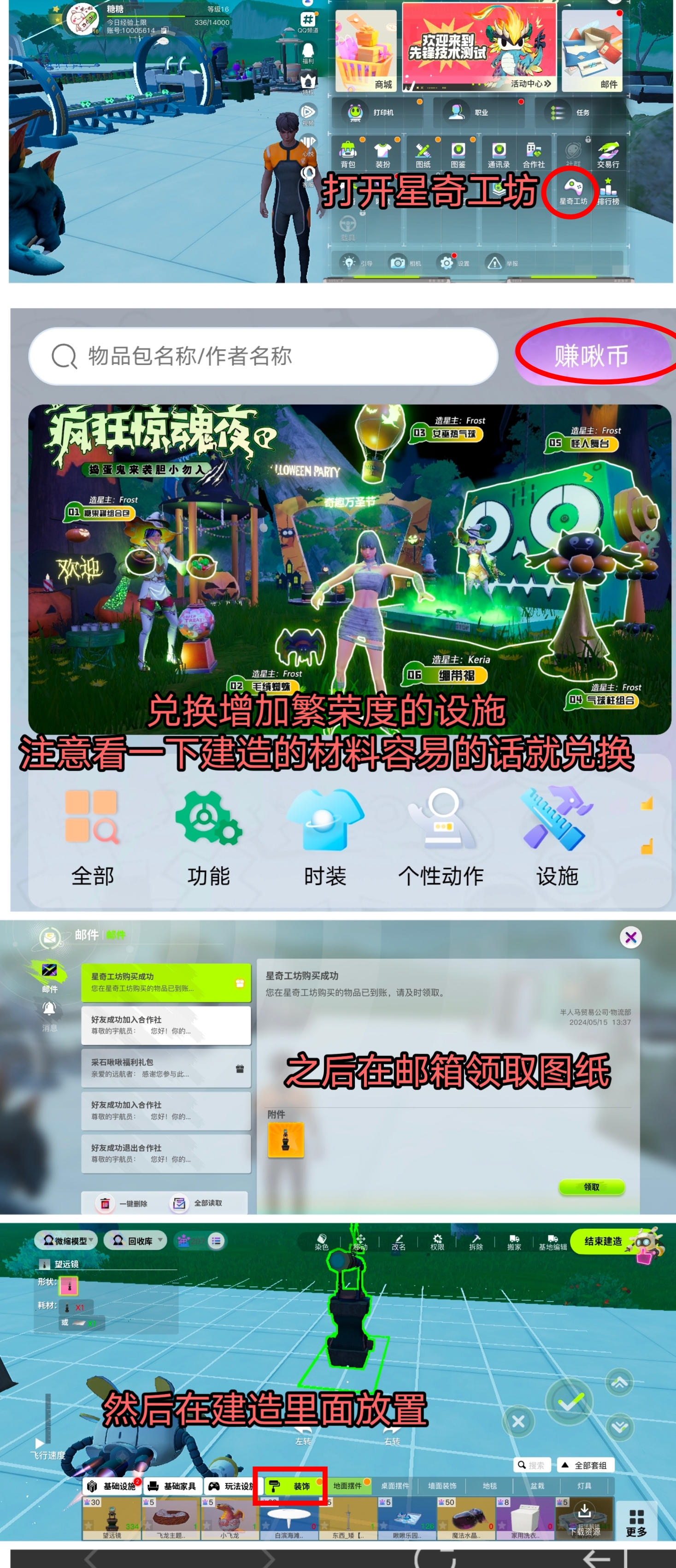 5.除了游戏中获得的建筑设施,在星奇工坊还能兑换很多增加繁荣多的建筑设施。