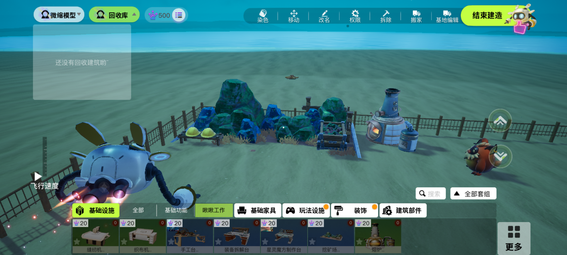 回收的建筑会到回收仓,甚至可以将基地收入其中。通过搬家功能回收的基地同样会出现在回收库中,并且可以像其他建筑一样摆放。